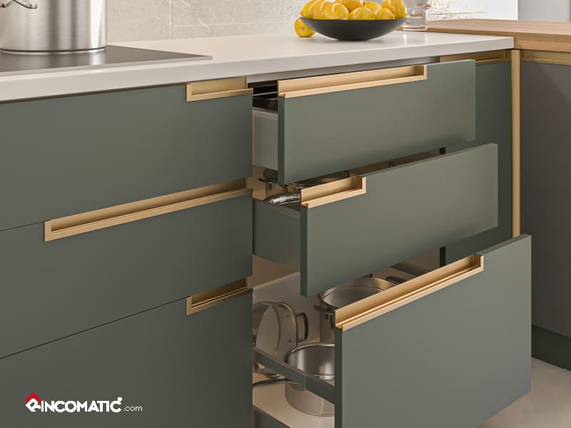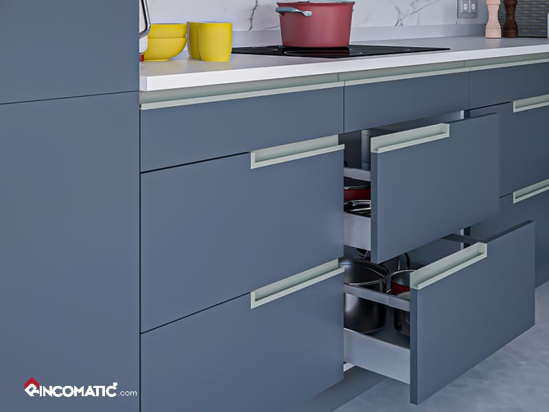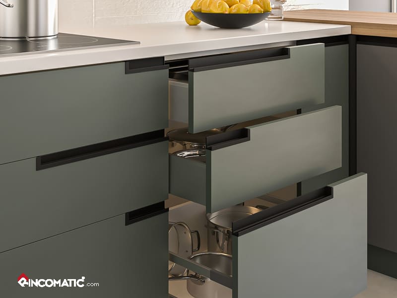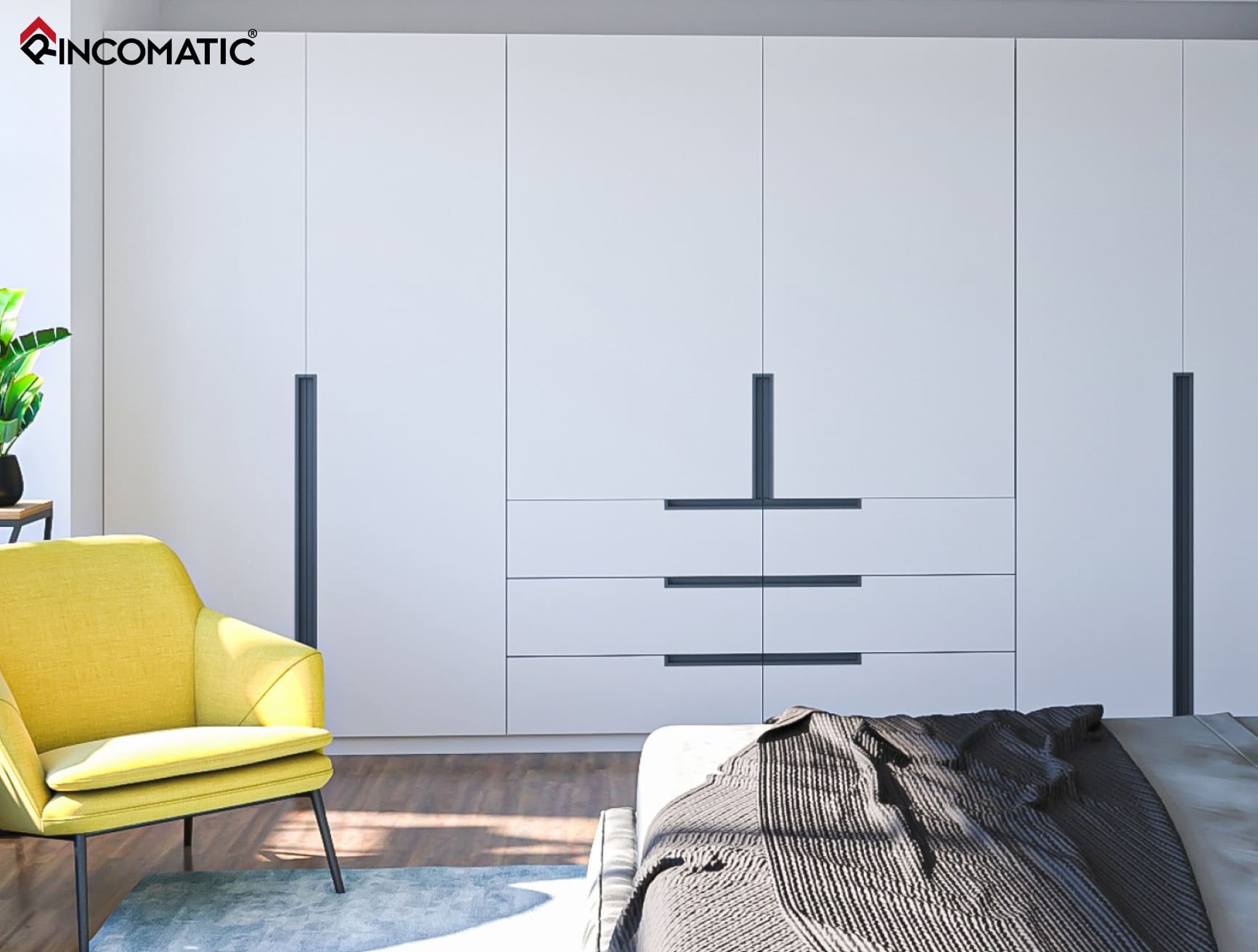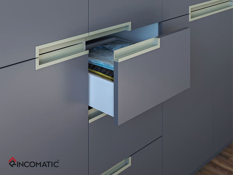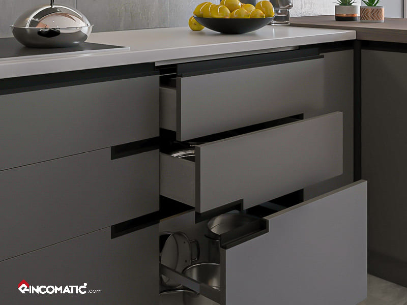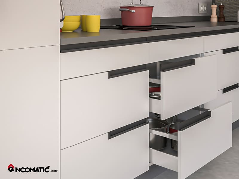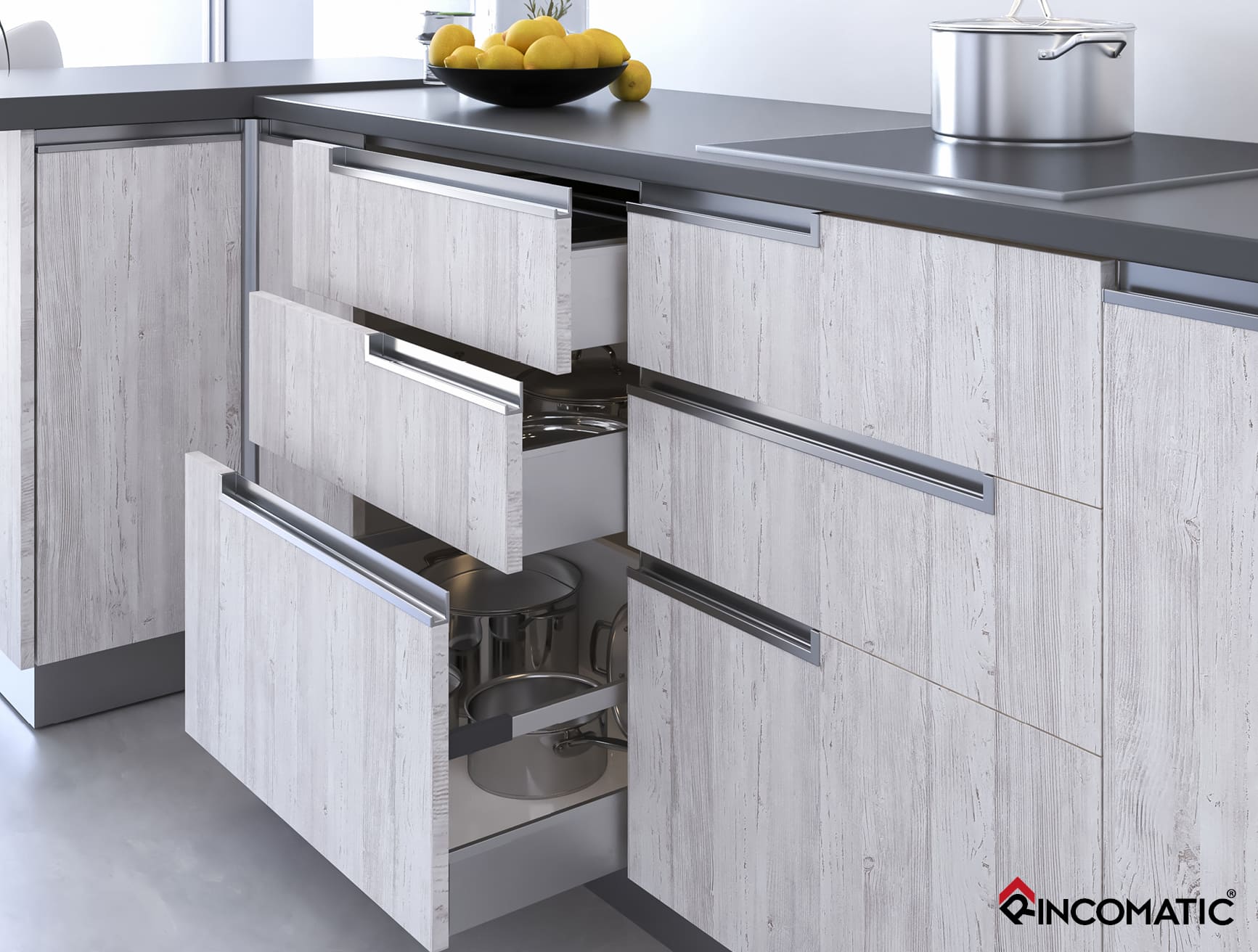 The combination of partially integrated left- and right-handed handles allows to achieve a variety of projects. Ideal for modern kitchens, commercial and residential applications, and more. Select the desired location and size. Can be used horizontally or vertically. Check bellow the most current colours.