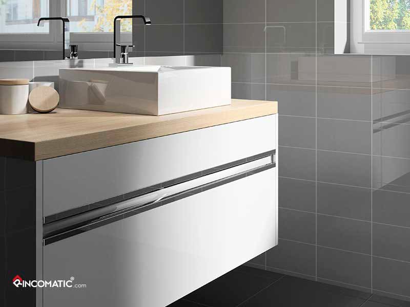 Syma50 Profile Handle can be customized by inserting a decorative laminate with the purpose of matching the color of the handle with the door or on the contrary, to create a contrast.