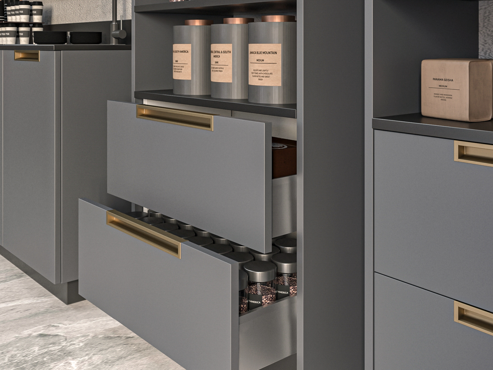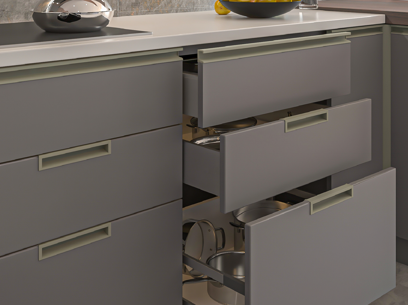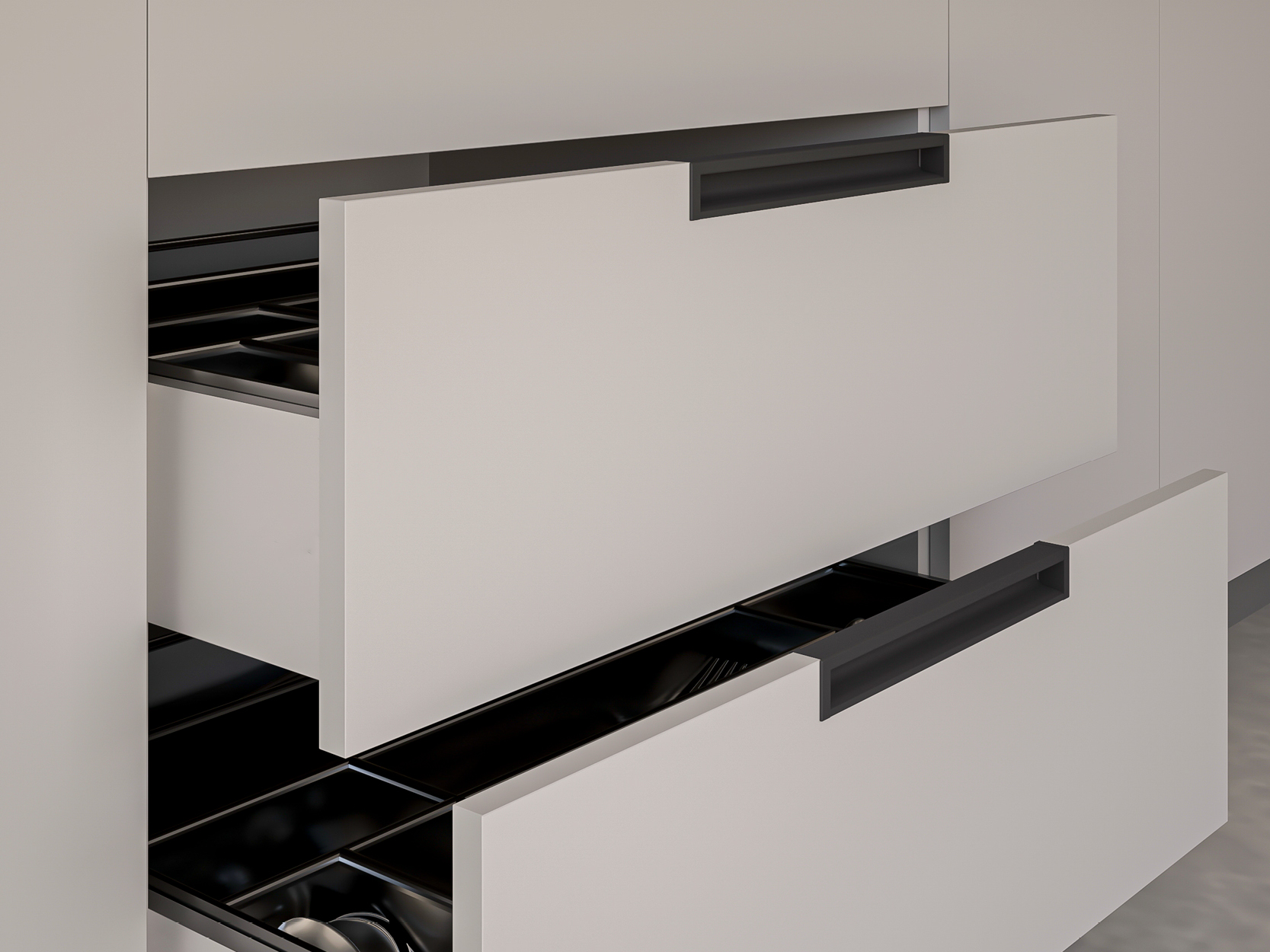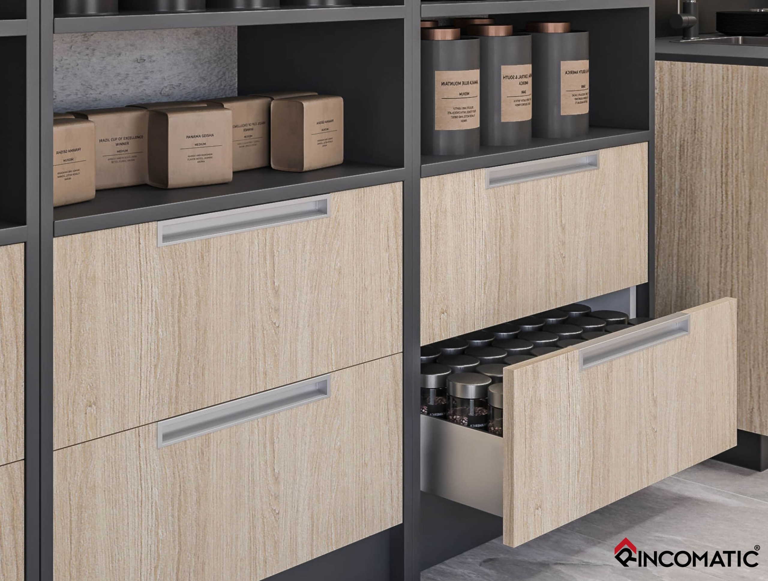 Rincomatic Gola Profile for Upper Cabinets is an opening system for the door fronts located on the upper cabinets.