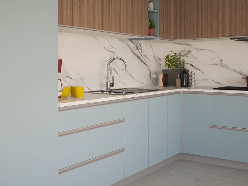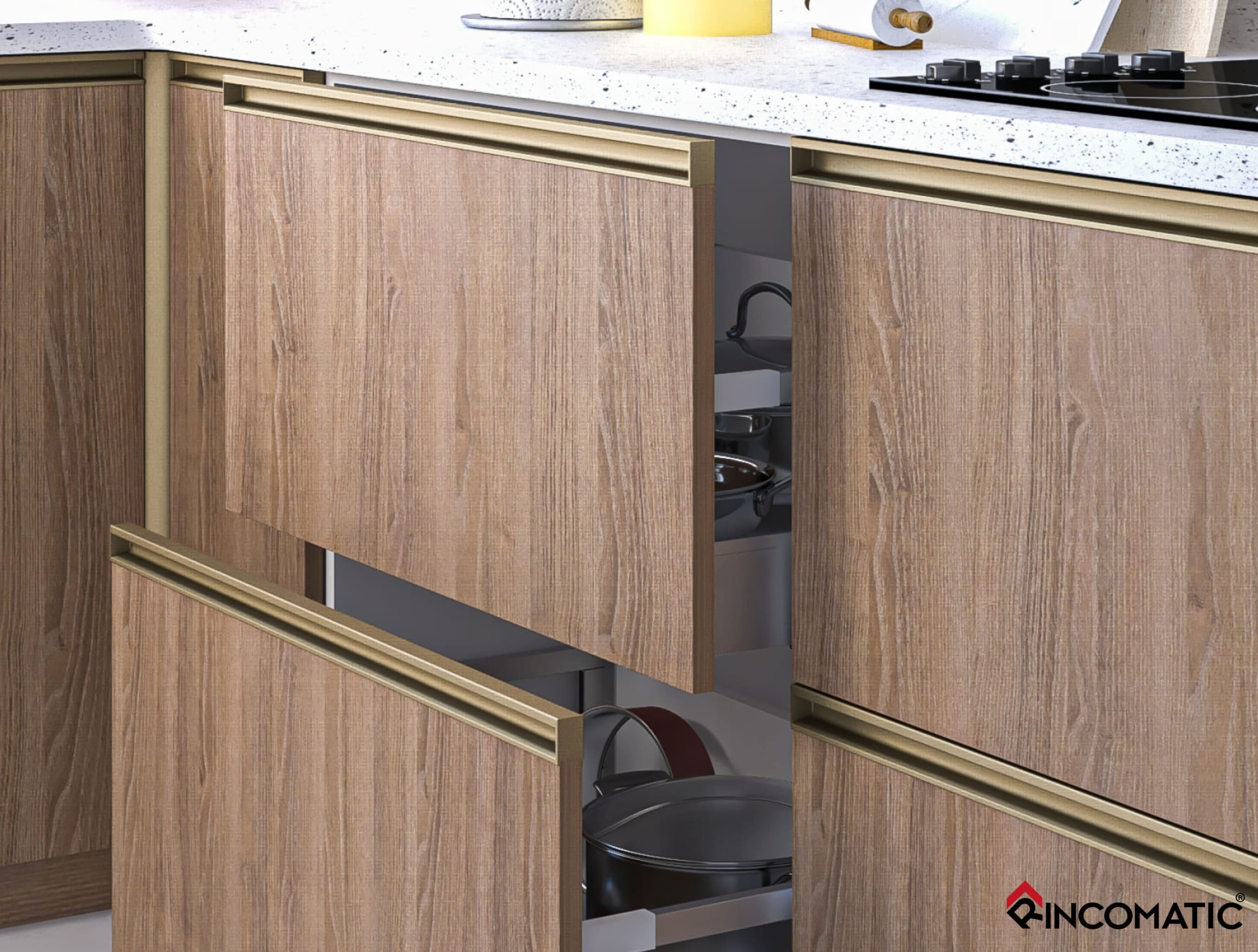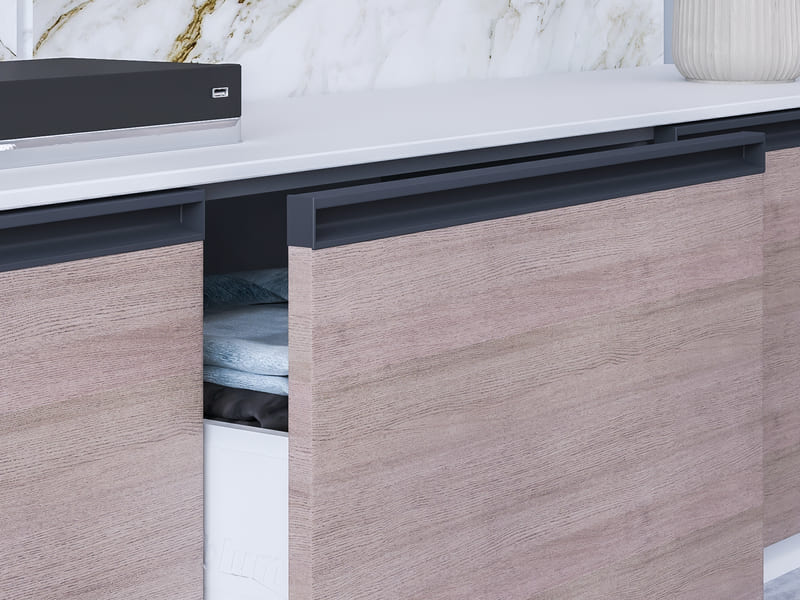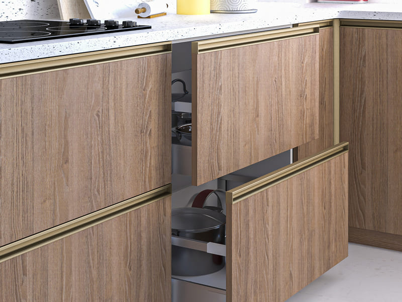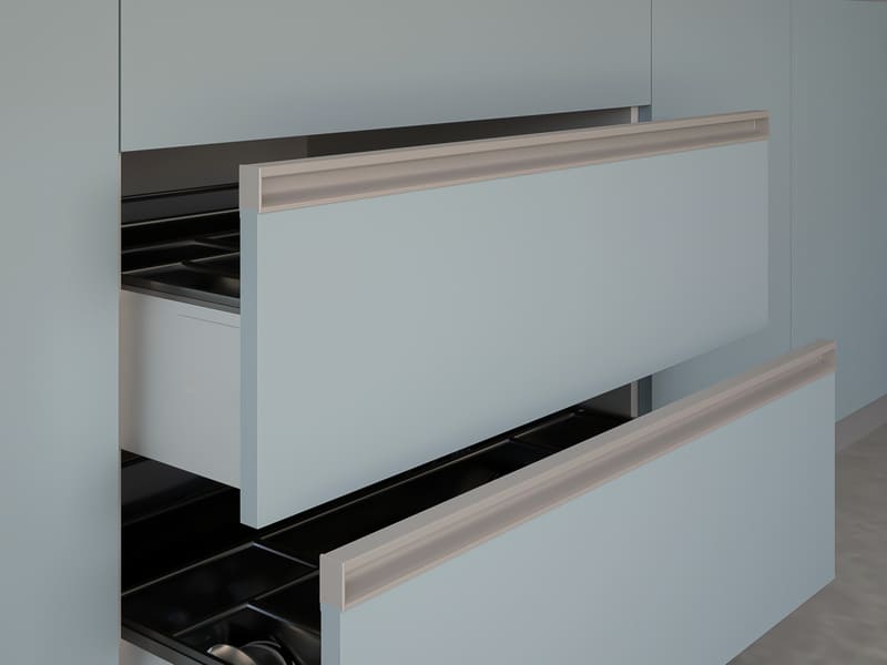 Rincomatic Gola Profile for Upper Cabinets is an opening system for the door fronts located on the upper cabinets.