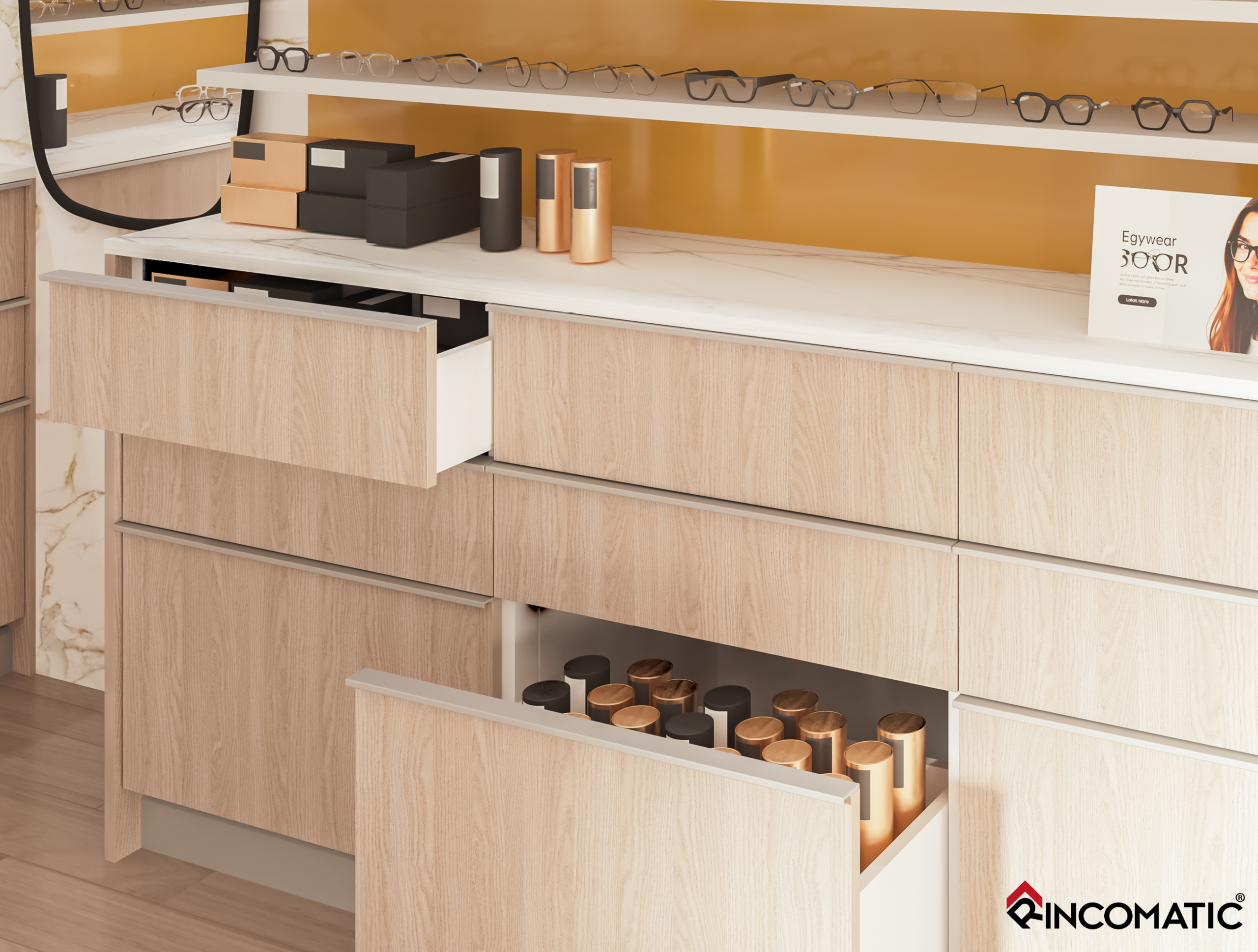 Its installation through Rincomatic Clip-System avoids additional machining of cabinets.