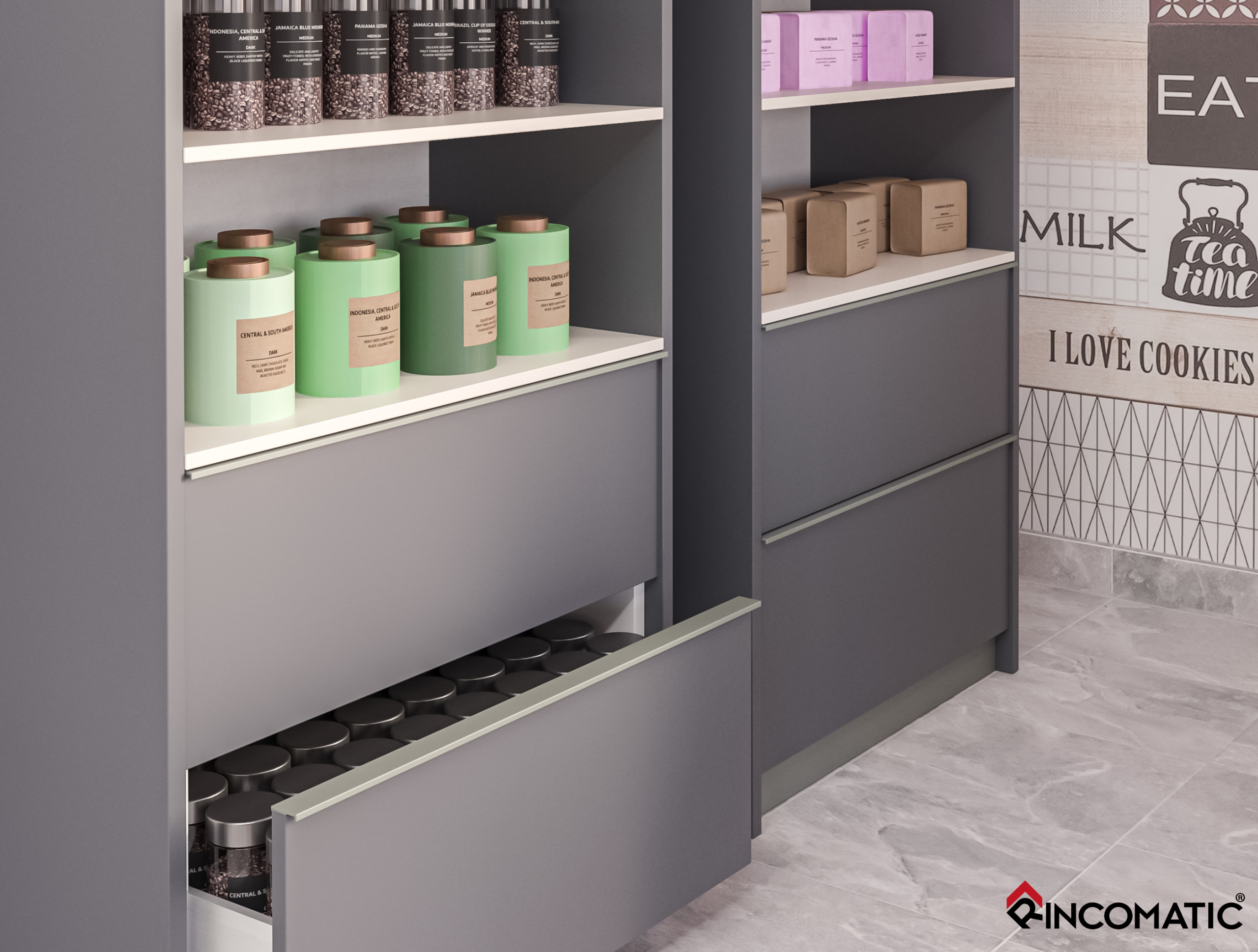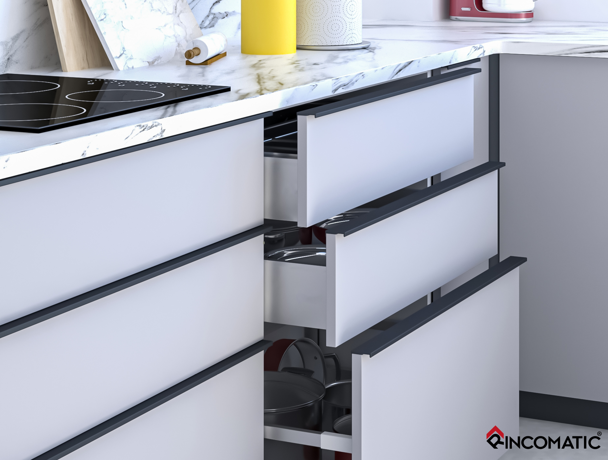 Rincomatic Gola Profile for Upper Cabinets is an opening system for the door fronts located on the upper cabinets.