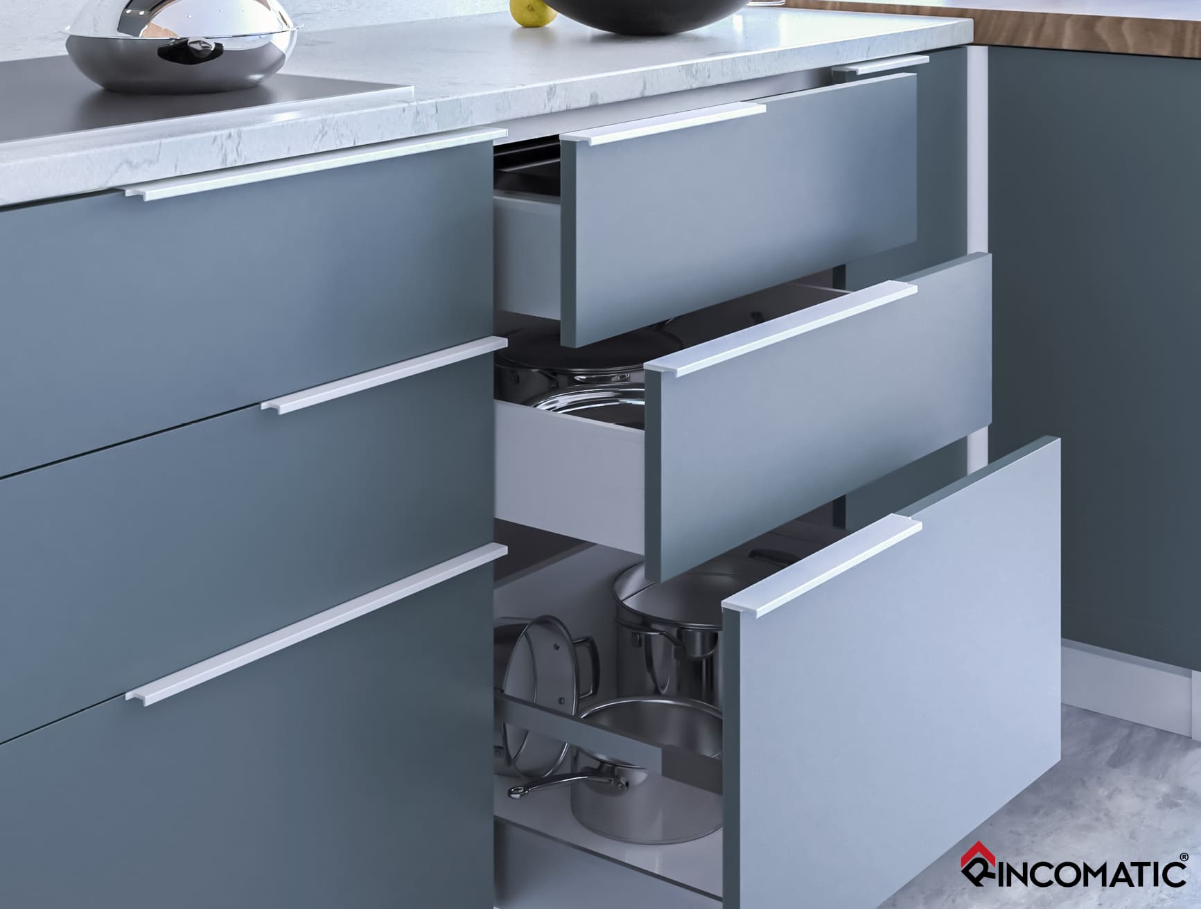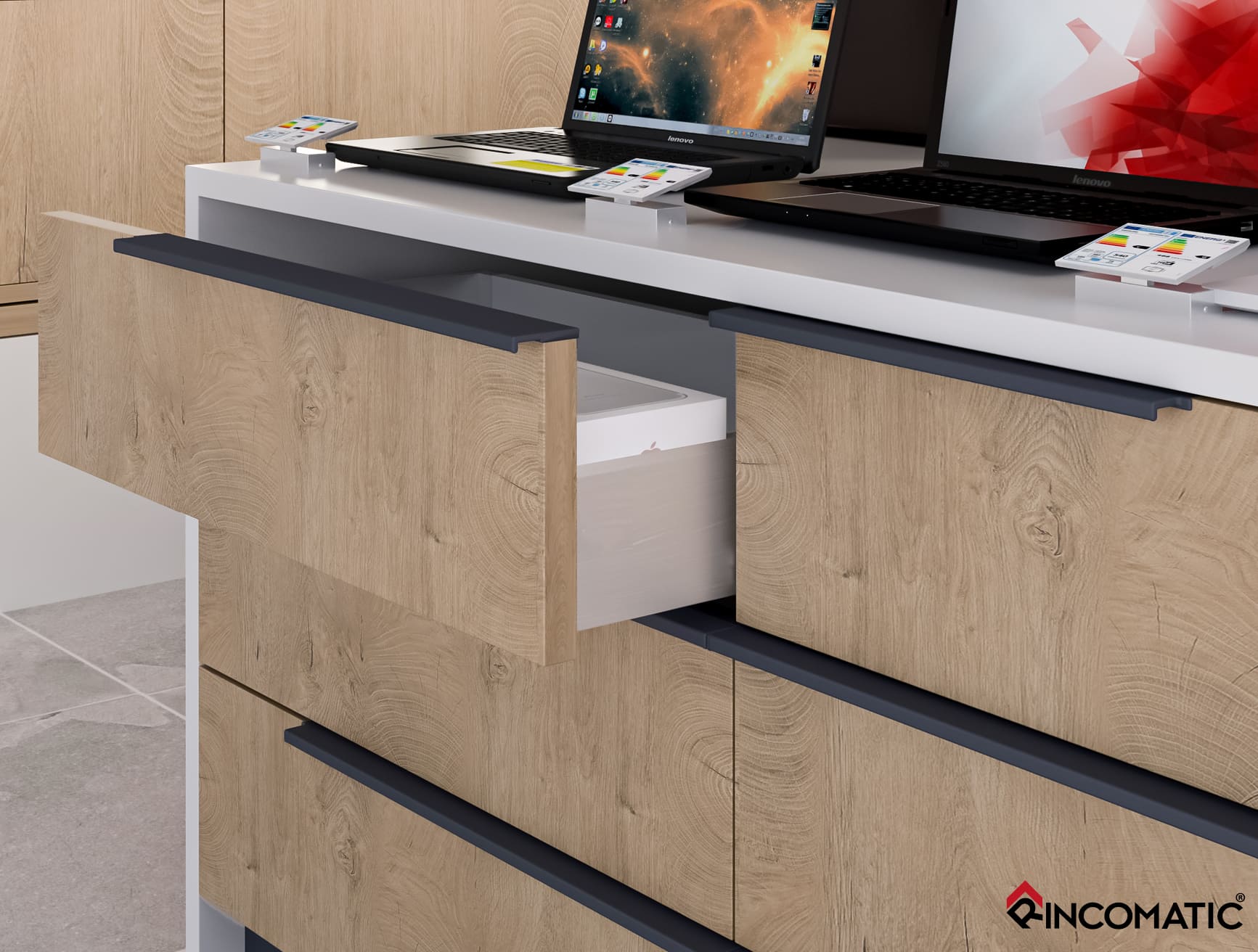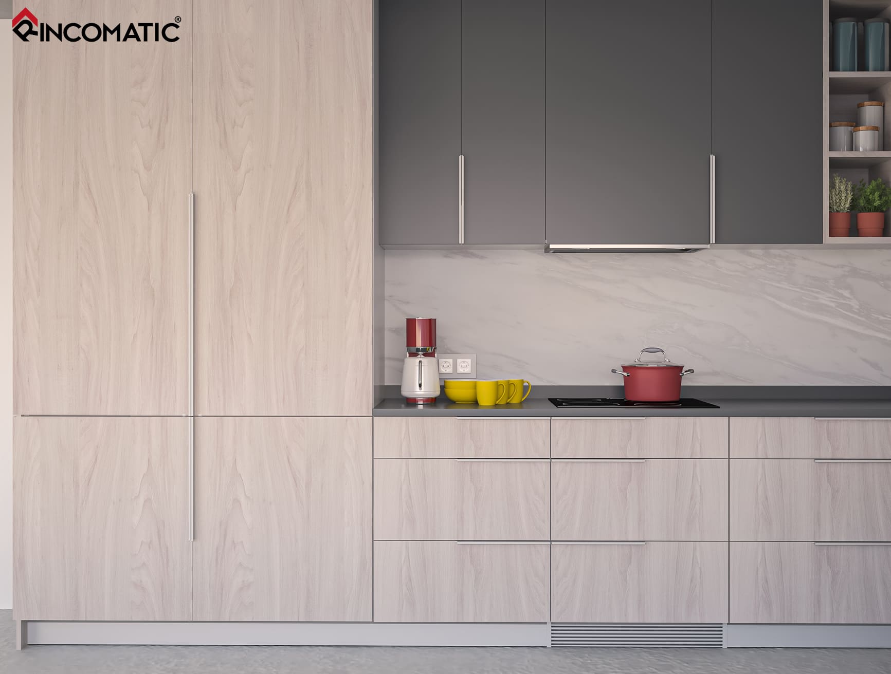 Rincomatic Gola Profile for Upper Cabinets is an opening system for the door fronts located on the upper cabinets.