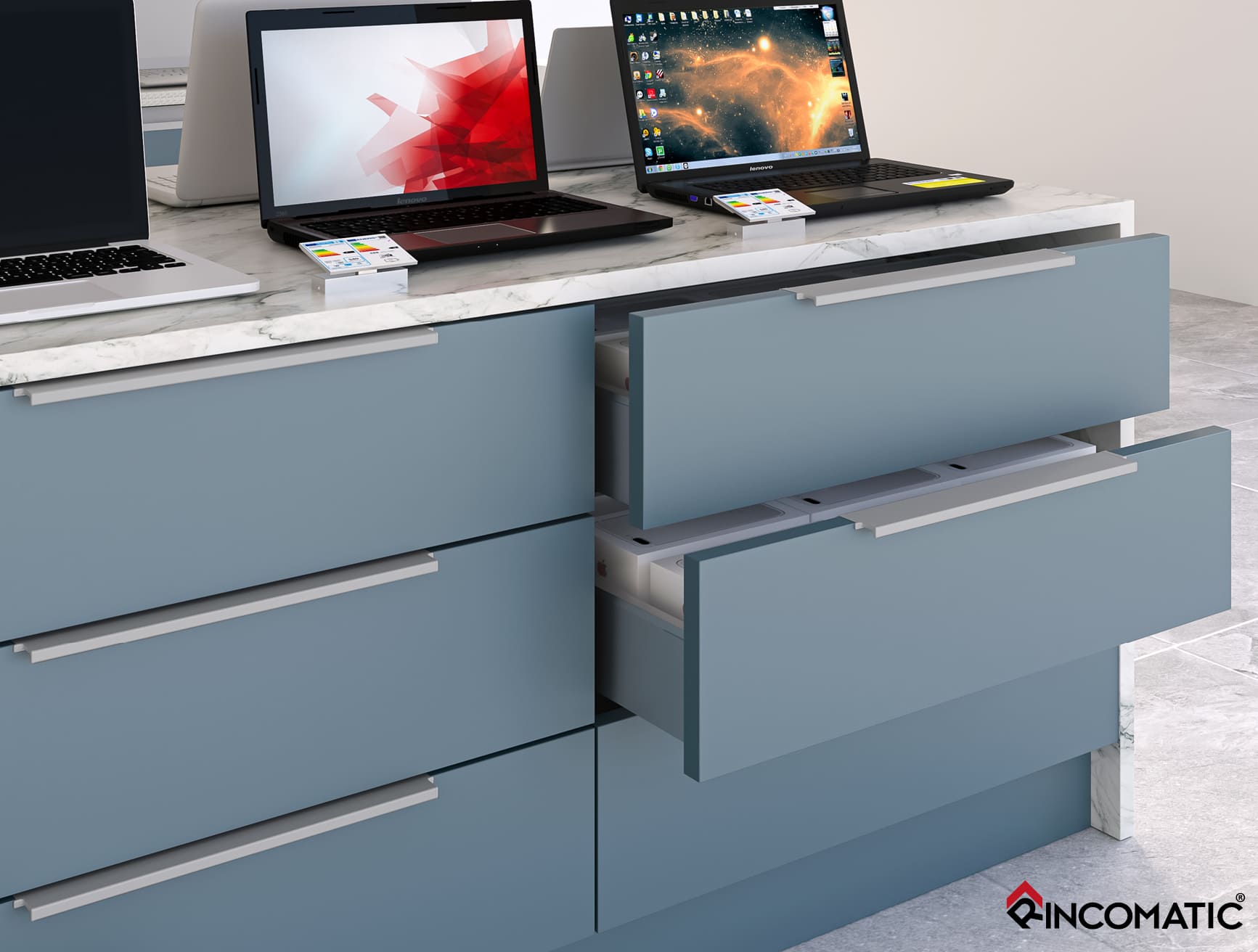 Su instalación mediante el Clip-System Rincomatic evita las mecanizaciones del mueble.