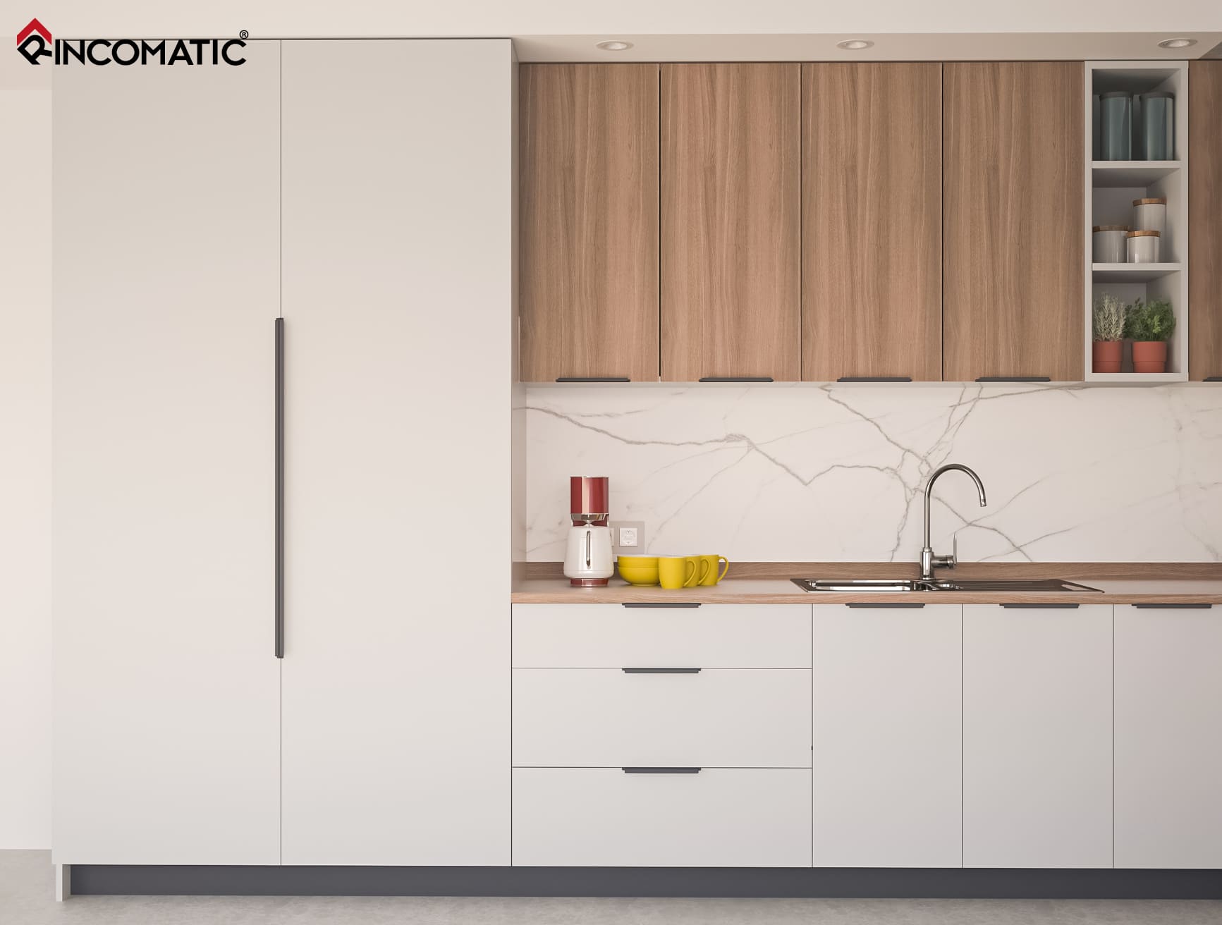 El Perfil Gola Rincomatic para Muebles Altos es un sistema de apertura para puertas de los módulos superiores.
