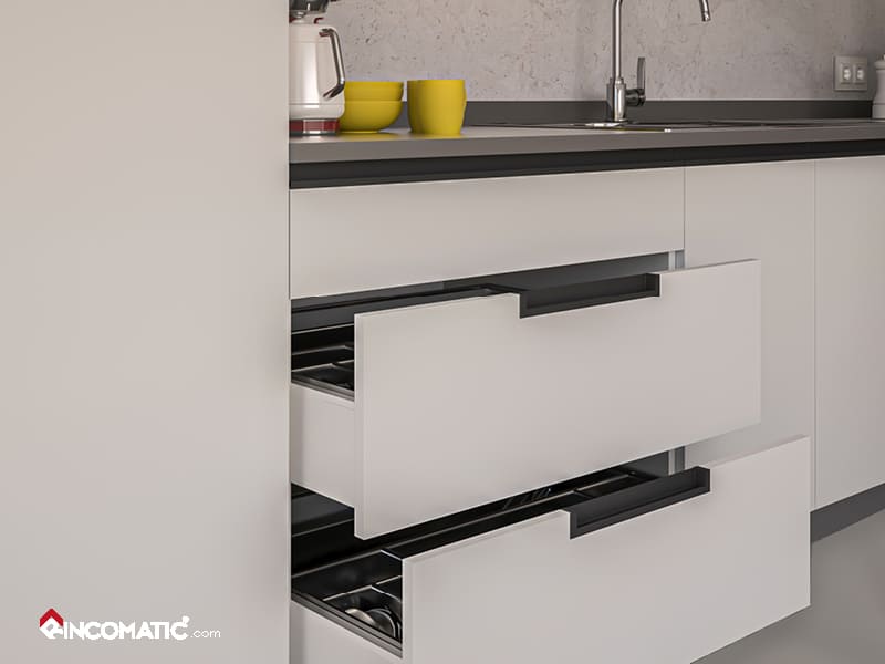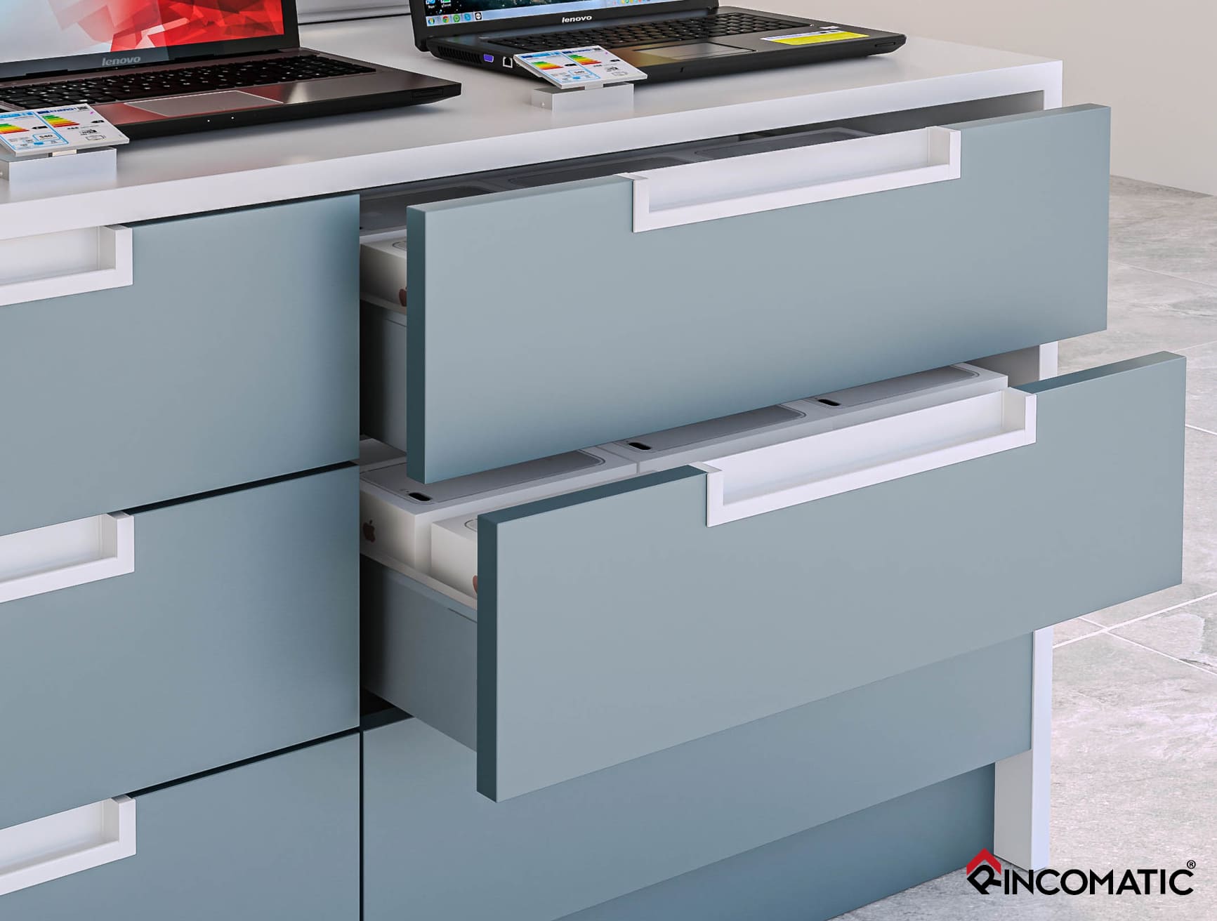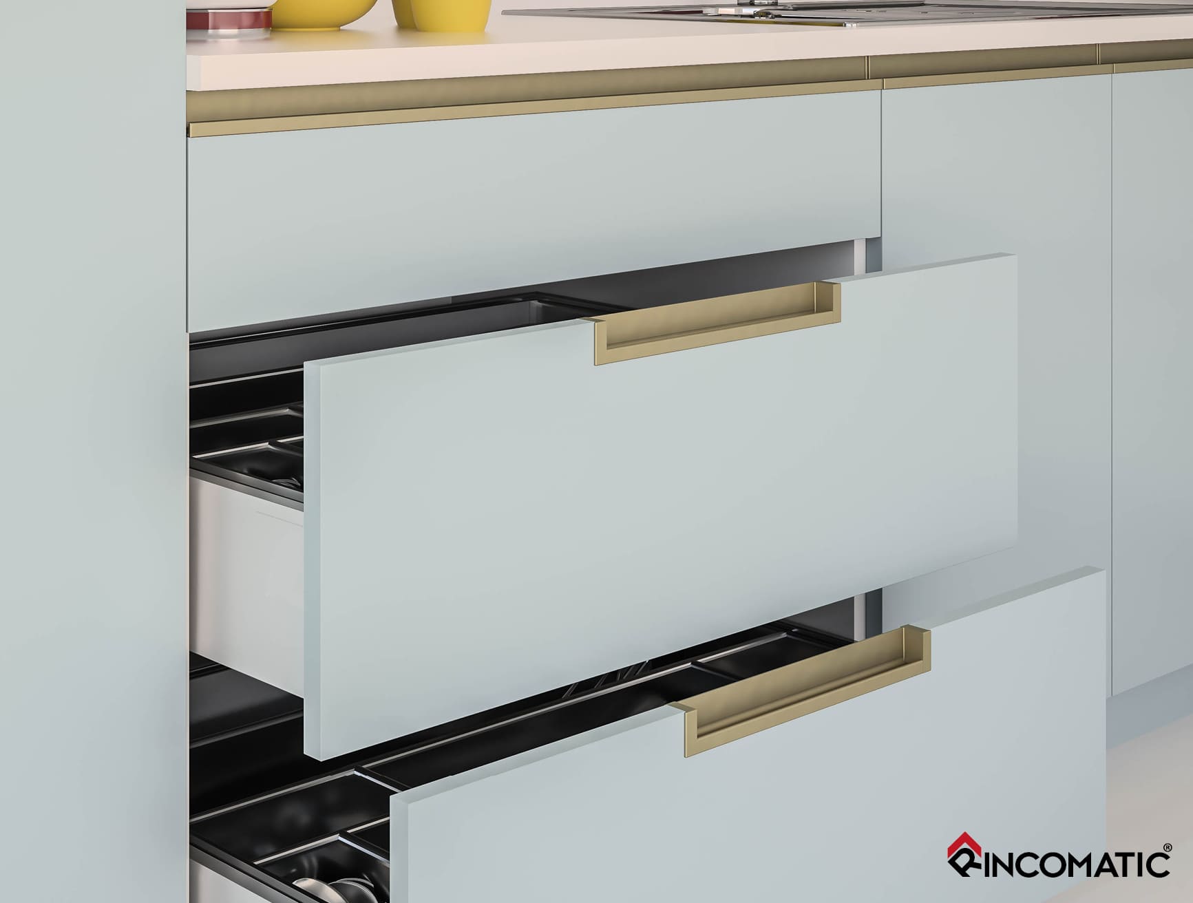 Se pueden adquir sus componentes por separado o tiradores completamente terminados y listos para su instalación sobre el frente o cajón.