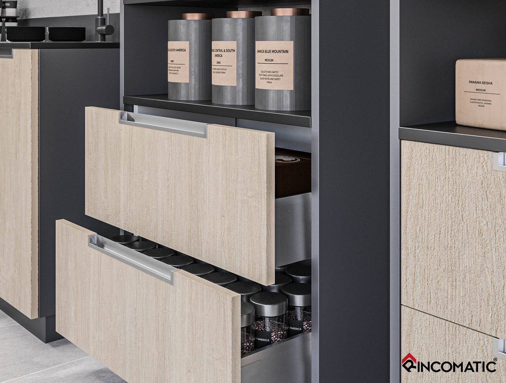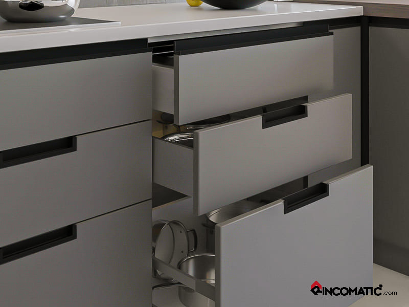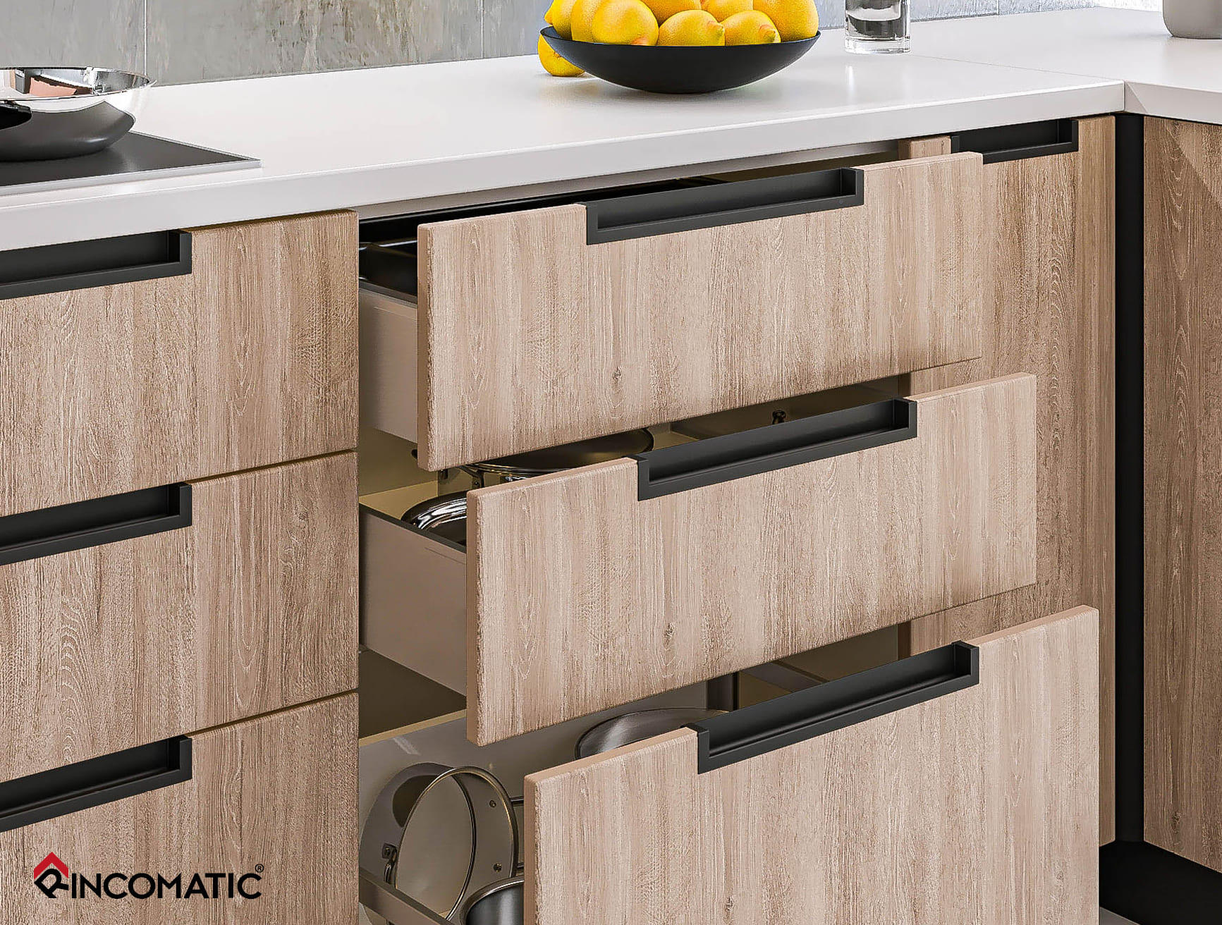 Syma32 Integrado Total es un tirador completamente integrado en puertas y frentes de cajón que consigue una apertura cómoda y una estética minimalista.