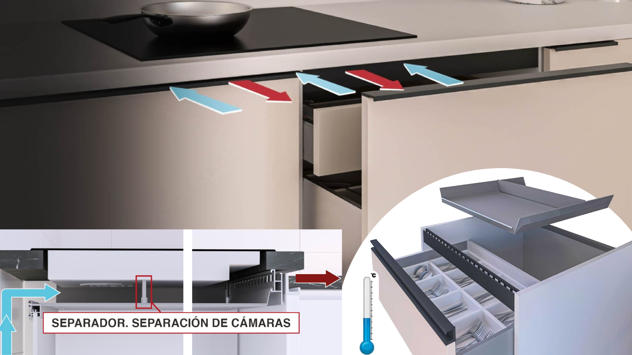 Elige tu tipo de mueble de cocina y descubre como nuestro kit de ventilación Ventoo es capaz de reducir la temperatura del mueble de cocina hasta 37° grados evitando así las averías ocasionadas por el sobrecalientamiento del mueble de cocina.