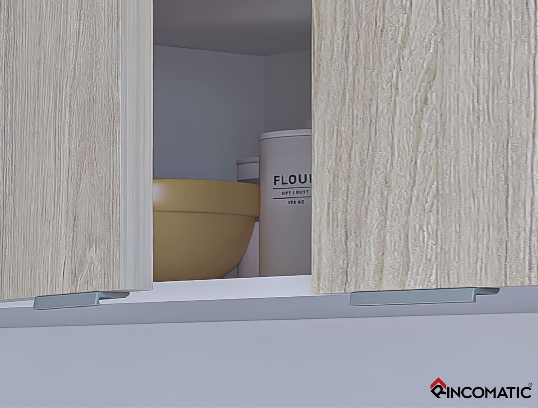 El tirador Rincomatic Sugo ha sido desarrollado como complemento ideal para sistemas de perfil gola plano. Además es una opción excelnete para la apertura de puertas de los módulos superiores.