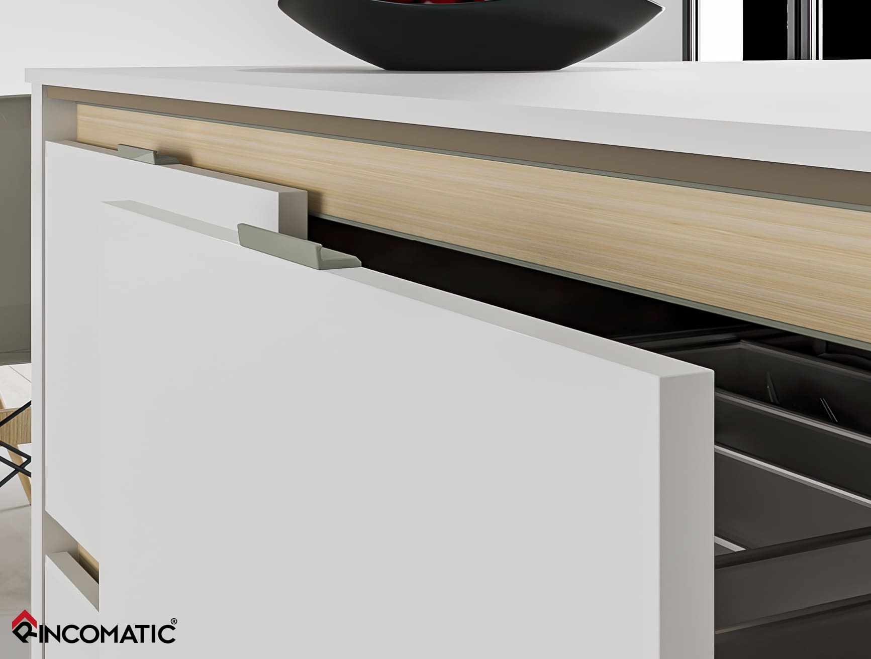 Rincomatic Sugo es un tirador elegante y vanguardista que Rincomatic ofrece como alternativa para una apertura cómoda de puertas o cajones.
