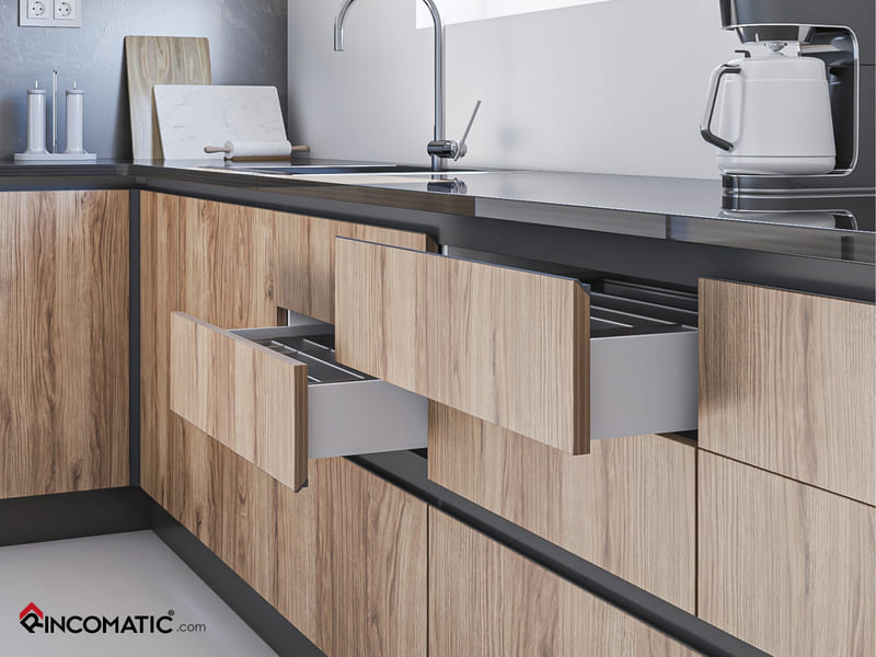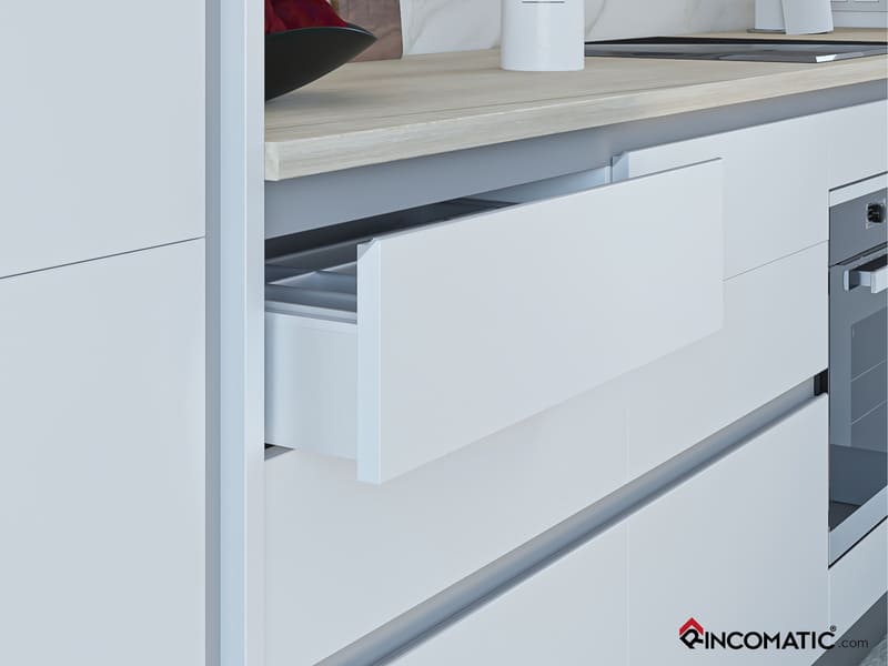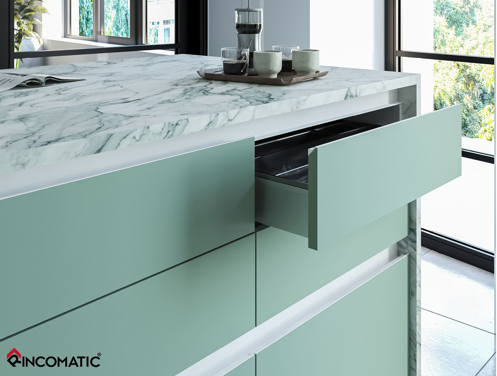 Rincomatic Syma2 Inglete es un tirador de perfil uñero casi invisible, que consigue crear líneas rectas y minimalistas propias de un diseño contemporáneo. Además es un complemento perfecto para el perfil Gola Plano de Rincomatic.
