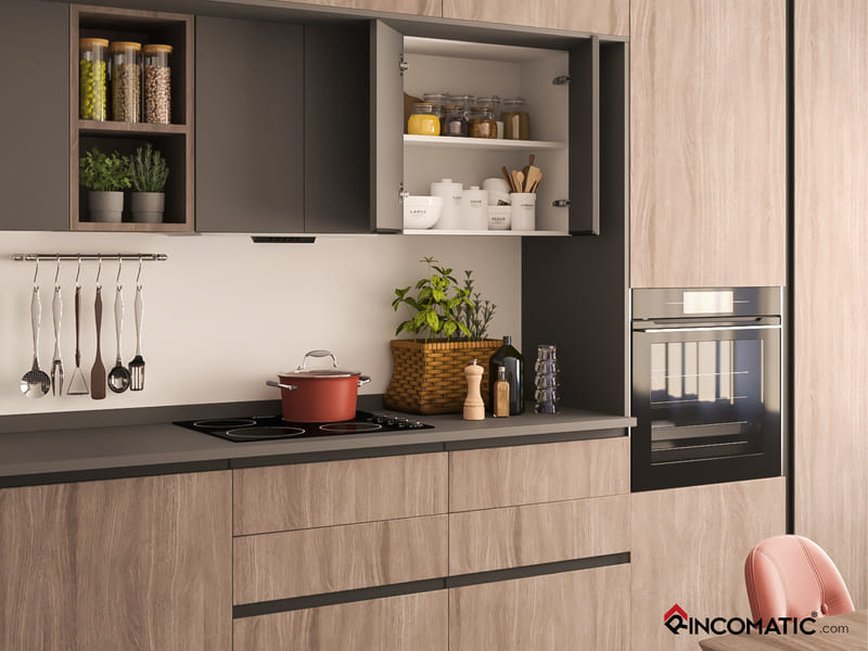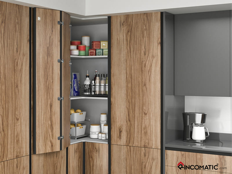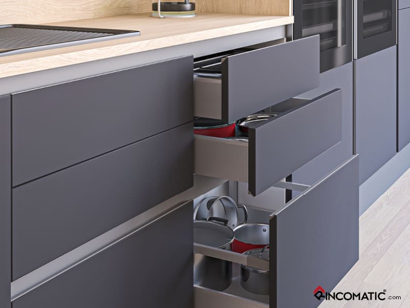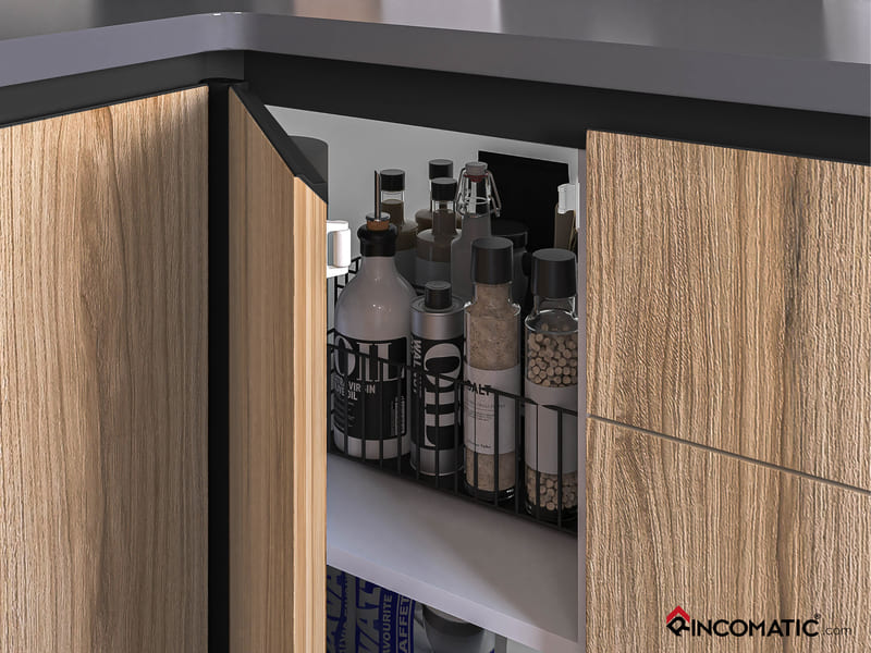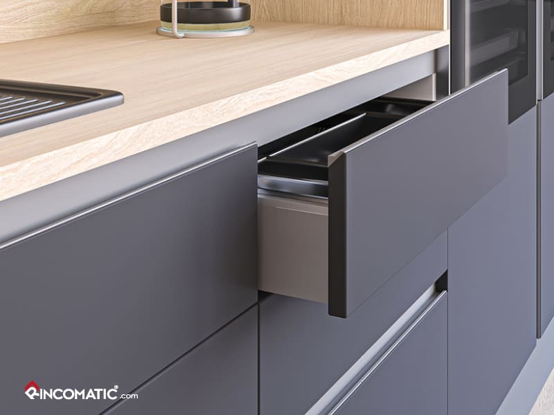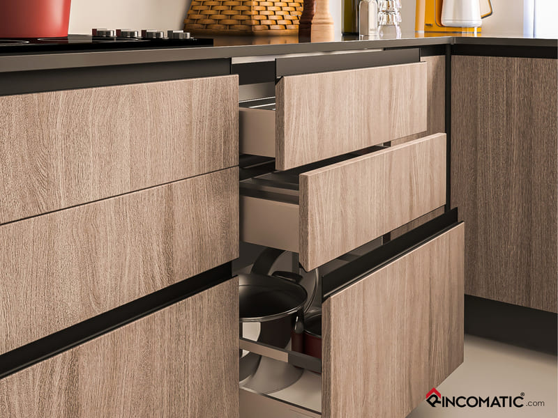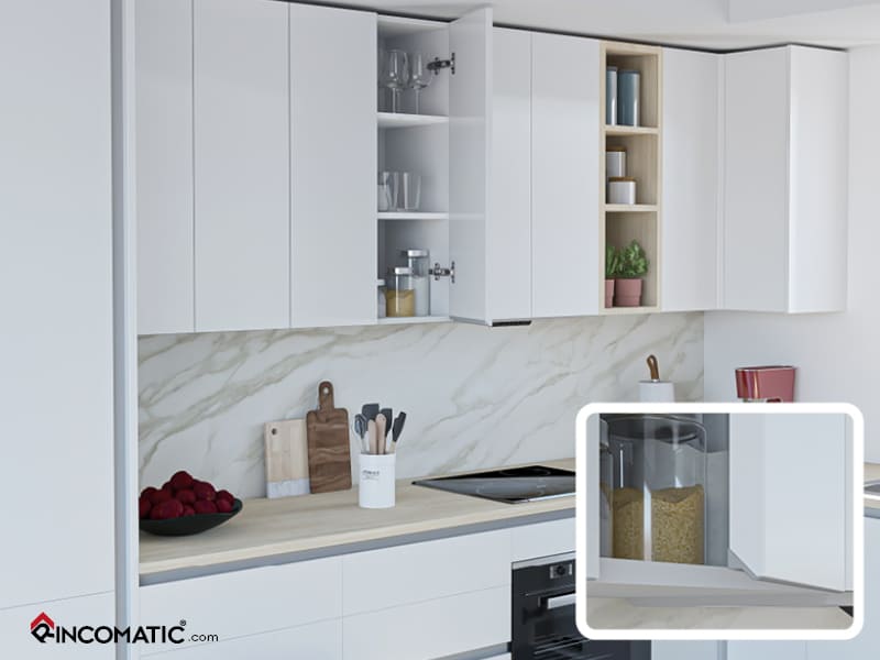 Syma2 Inglete es una alternativa ideal para los muebles altos que proporciona una apertura cómoda, una fácil limpieza evitando el deterioro de la puerta. Puede instalarse en la parte inferior de las puertas superiores y frentes avatibles, manteniendo de este modo lineas paralelas con los muebles bajos.